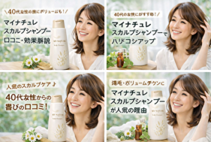 マイナチュレ スカルプシャンプーは、多くの女性から口コミで評価されています。実際に使っている人の声を見ると、40代女性の髪の悩みに合っていることがわかります。